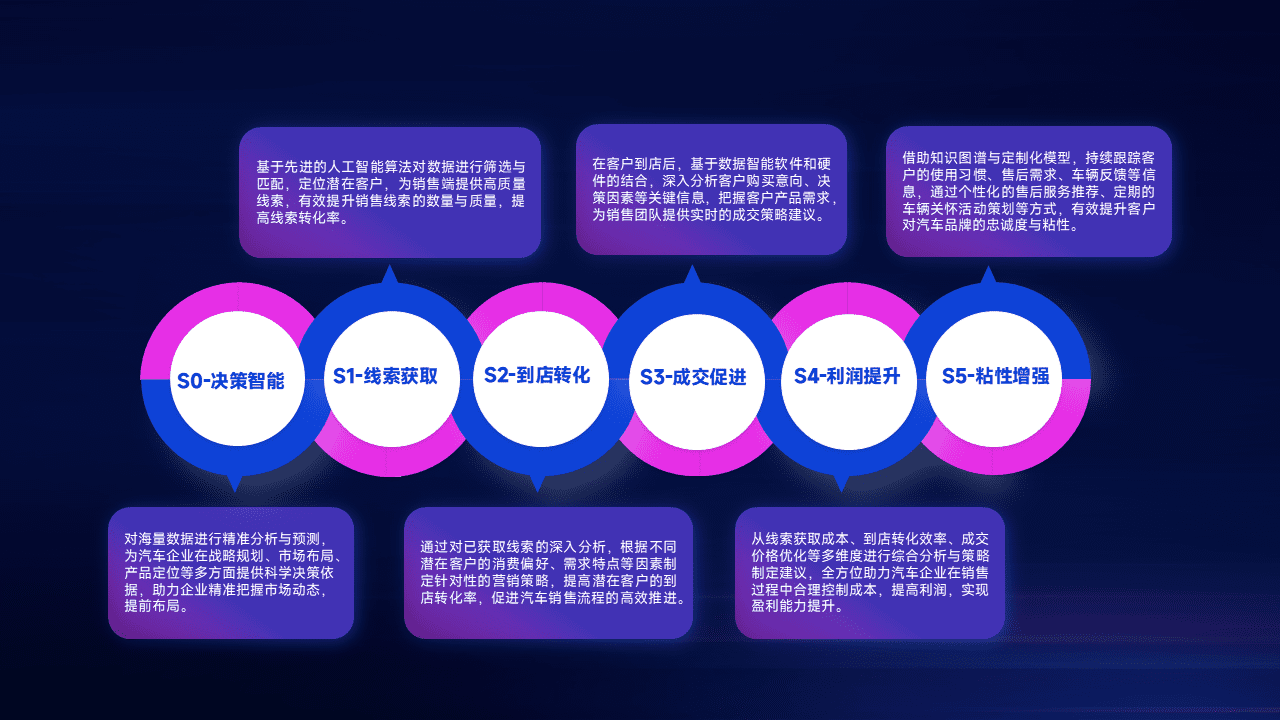 通过拓宽潜在客户来源、、、、优化线索分配并提高到店转化率,,以增强销售效率。。。同时,,利用线索数据不断优化分析模型,,,有效提升转化率,,扩大营销影响力。。。。